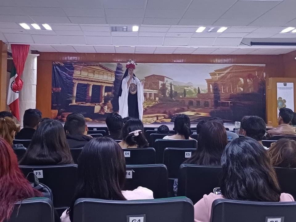 Foto: Facebook Grupo Cultural Jolgorio | Mara Garcia presentando monólogo “Mexicanas Ilustres” en UAEM Valle de Chalco